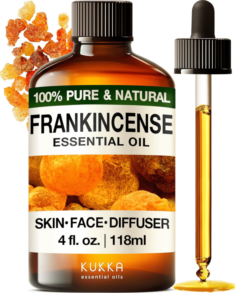 Try this product from Amazon: Kukka Frankincense Essential Oil for Face & Skin