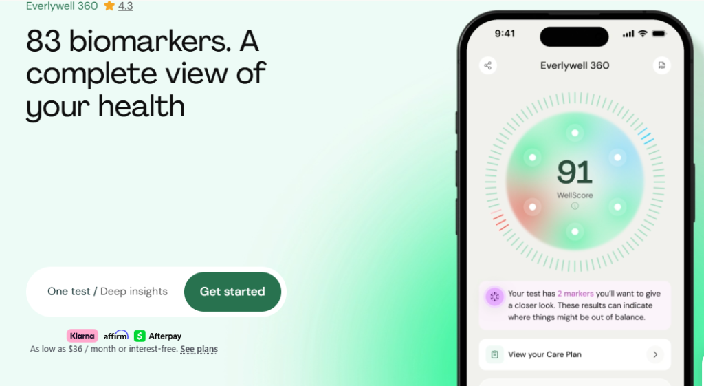 Try this product: Everlywell 360 – 83 Biomakers. A complete view of your health