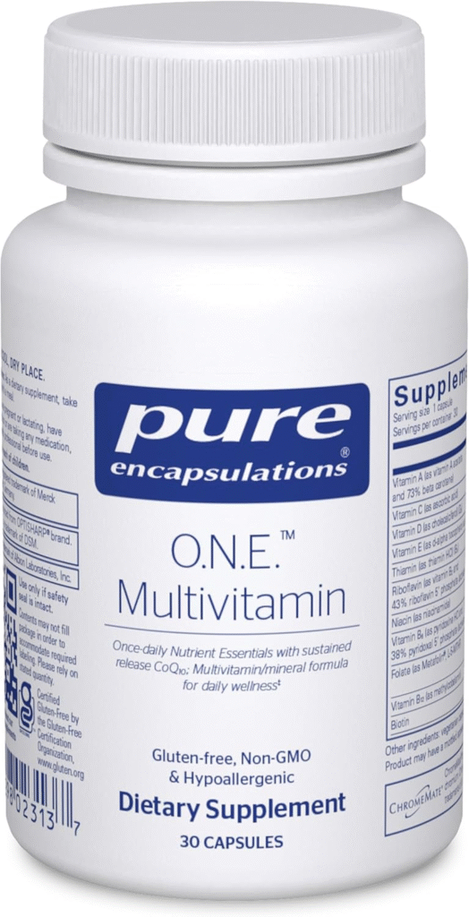 Pure Encapsulations is renowned for its hypoallergenic, research-based formulations, and their O.N.E. Multivitamin is an excellent choice for hormone support.